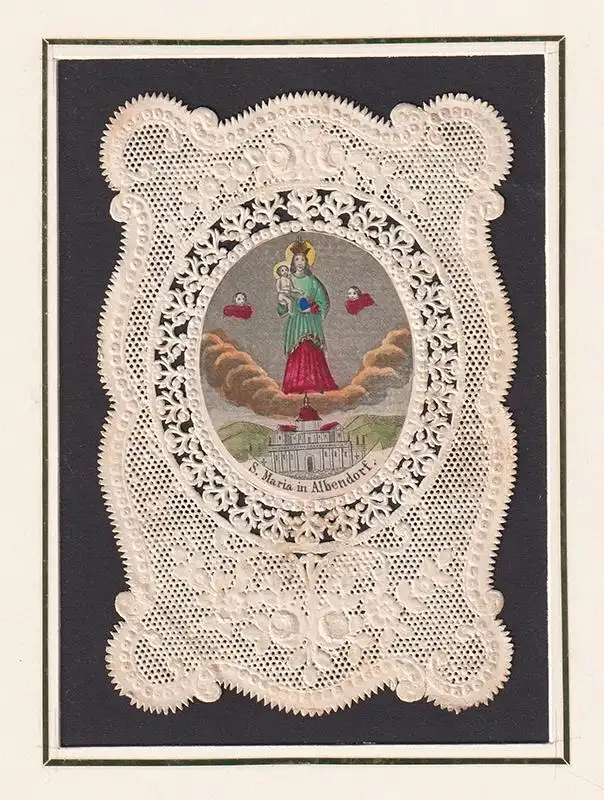 o. O. [um 1860]. Stahlstich-Applikation auf Stanzspitze. 11 x 7, 2 cm. (Gesamtgr.). Stanzspitze teils etwas berieben.