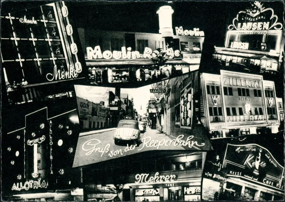 St. Pauli-Hamburg Reeperbahn bei Nacht Moulin Rouge Menke MB 1955