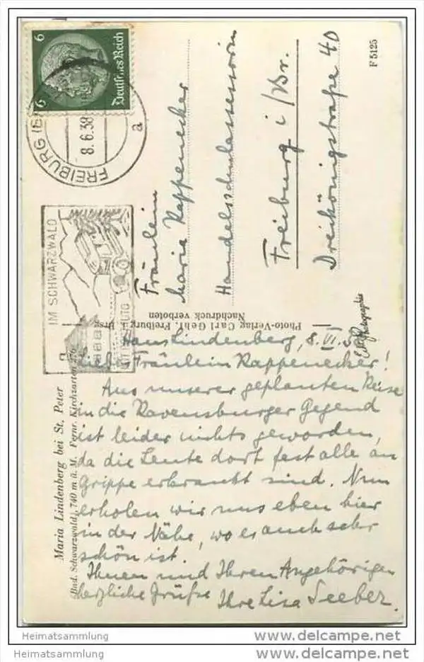 St. Peter - Maria Lindenberg - Foto-AK - Verlag Carl Gehl Freiburg - Stempelspur (G27409) gel. 1938