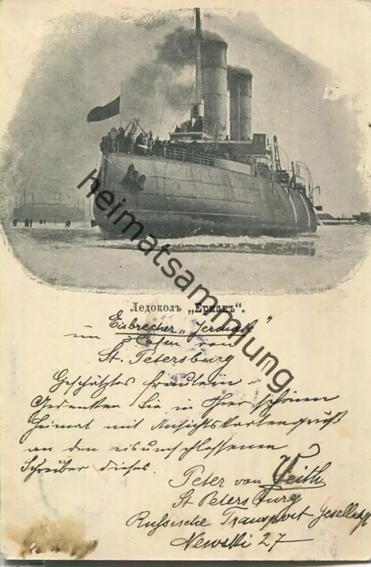 St. Petersburg - Eisbrecher Jermak - leichte Gebrauchsspuren (G13937) gel. 1900