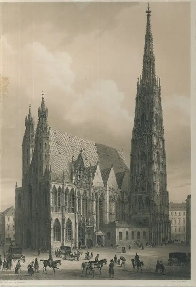 Wien, Paterno`s Wwe. [um 1850]. Getönte Orig.-Lithographie von und nach [Franz Xaver] Sandmann. Gedruckt bei Rauh. 40, 5 x 31 cm. (Bildausschn.). Gerahmt. Im ob. Rand Enriß, einige Knickfalten. Einzelne Stockflecken im linken Bildrand.