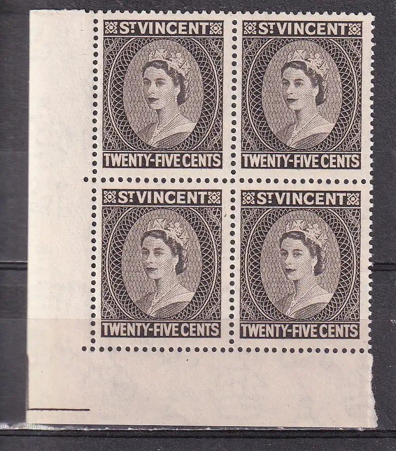 St VINCENT 1955 QEII 10c/ 4er Block ECKRAND SCHNITTWINKEL