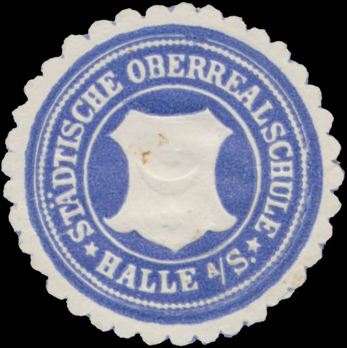 Schule, blau, weiß, geprägt, Größe/Zustand: 3 , fleckig, Original Verschluss-Siegelmarke aus Papier welche früher von Behörden, Firmen etc. zum Versiegeln der Briefe benutzt wurden