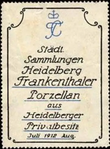 Frankenthaler Porzellan aus Heidelberger Privatbesitz, Größe/Zustand: 7x5 , beschädigt, Original alte Reklamemarke die seinerzeit für die Werbung benutzt wurde