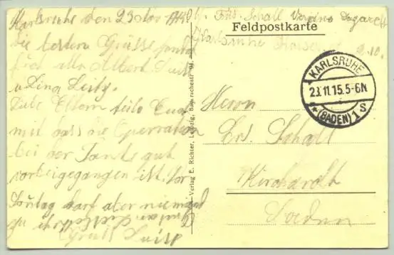 Artikelbeschreibung und Zustand : Siehe Scan. Weitere Infos : Ansichtskarte. 1. Weltkrieg 1915