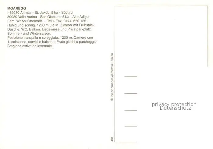 St_Jakob_Ahrntal Gaestehaus Pension Garni Moaregg St_Jakob_Ahrntal postalisch nicht gelaufen nach 1965 Erhaltung siehe scans [FriedD77] Frierer