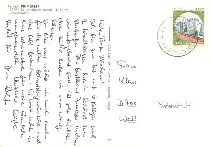 St_Johann_Ahrntal Gaestehaus Primisser St_Johann_Ahrntal postalisch gelaufen nach 1965 Erhaltung siehe scans [WerneD78] WernPID7