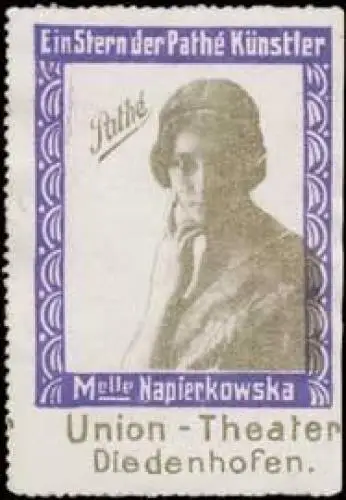 Ein Stern der Pathe Künstler, Tänzerin, Schauspielerin, Cinema-Pathe, Kino, Größe/Zustand: 6x4 , guter Zustand, Original alte Reklamemarke die seinerzeit für die Werbung benutzt wurde