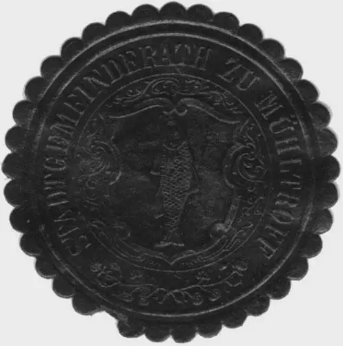 Trauermarke, schwarz, Fisch, Größe/Zustand: 4 , beschädigt, Original Verschluss-Siegelmarke aus Papier welche früher von Behörden, Firmen etc. zum Versiegeln der Briefe benutzt wurden