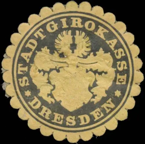 Der Rat zu Dresden, gelb, schwarz, Größe/Zustand: 4 , beschädigt, Original Verschluss-Siegelmarke aus Papier welche früher von Behörden, Firmen etc. zum Versiegeln der Briefe benutzt wurden