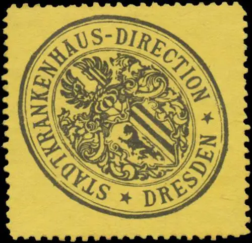 Krankenhaus, gelb, schwarz, Größe/Zustand: 4x4 , guter Zustand, Original Verschluss-Siegelmarke aus Papier welche früher von Behörden, Firmen etc. zum Versiegeln der Briefe benutzt wurden