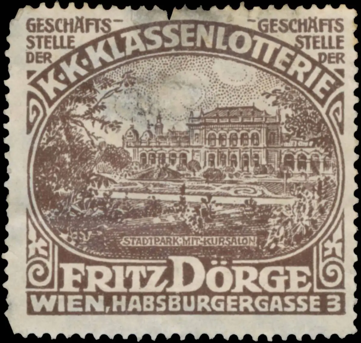 Habsburgergasse 3, Geschäftsstelle der k.k. Klassenlotterie, Lotterie, Größe/Zustand: 4x4 , beschädigt, Original alte Reklamemarke die seinerzeit für die Werbung benutzt wurde