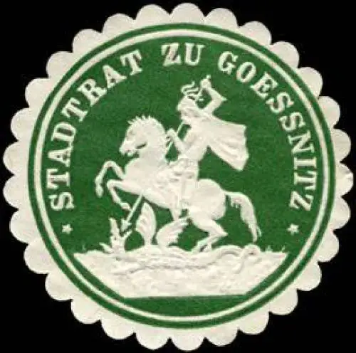 Goessnitz, grün, weiß, geprägt, Größe/Zustand: 4 , guter Zustand, Original Verschluss-Siegelmarke aus Papier welche früher von Behörden, Firmen etc. zum Versiegeln der Briefe benutzt wurden