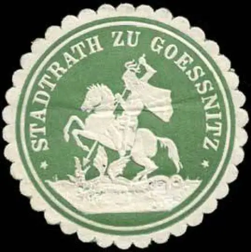 Goessnitz, Drache, grün, weiß, geprägt, Größe/Zustand: 4 , leicht geknittert, Original Verschluss-Siegelmarke aus Papier welche früher von Behörden, Firmen etc. zum Versiegeln der Briefe benutzt wurden