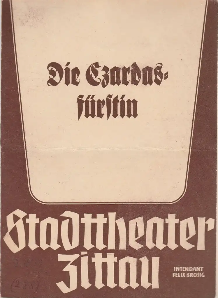 Stadttheater Zittau, Felix Brosig, Hubertus Methe: Programmheft Emmerich Kalman DIE CZARDASFÜRSTIN.