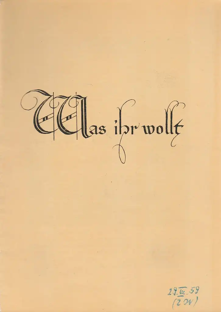 Titel: Programmheft William Shakespeare WAS IHR WOLLT