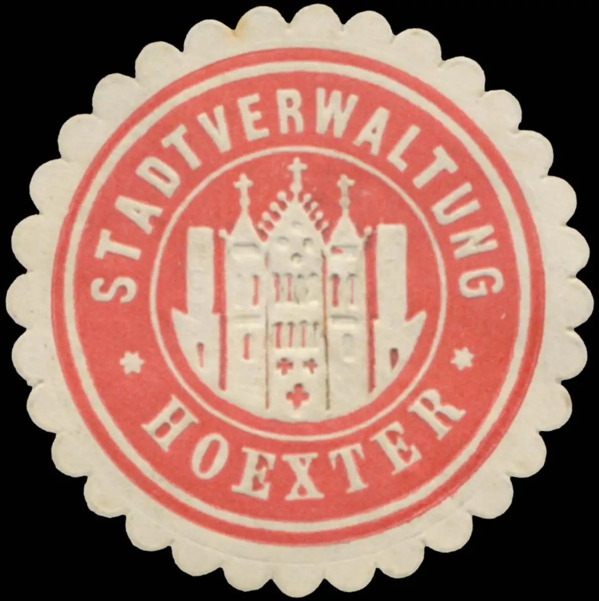 Hoexter, rot, weiß, geprägt, Größe/Zustand: 4 , guter Zustand, Original Verschluss-Siegelmarke aus Papier welche früher von Behörden, Firmen etc. zum Versiegeln der Briefe benutzt wurden