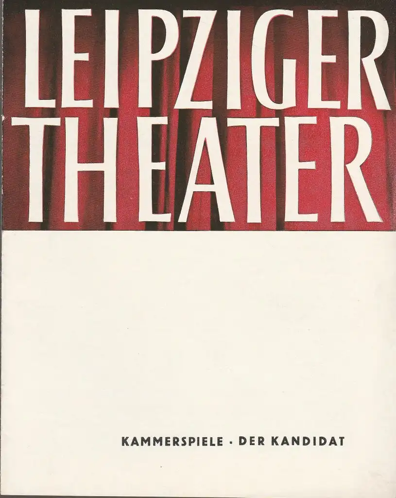 Regie: Heinrich Voigt. Bühne: Jochen Schube. Kostüme: Hanna Reichelt. Mitwirkende: Max Bernhardt, Ingeborg Ottmann, Doris Schmude, Felicitas Schink, Jörg Kaehler, Wolf Goette, Paul-Dolf Neis, Fred Kötteritzsch, Arnim Winkler, u.a. - Theaterprogramm, Opernprogramm, Ballettprogramm, Musicalprogramm, Konzertprogramm, Theatermemorabilia, Programmhefte Sammlung, deutsche Theatergeschichte.