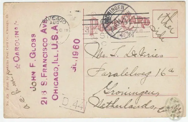 Chicago, Ill., Franklin [ca. 1911]. Farb. 9 x 14 cm. Ecke geknickt.