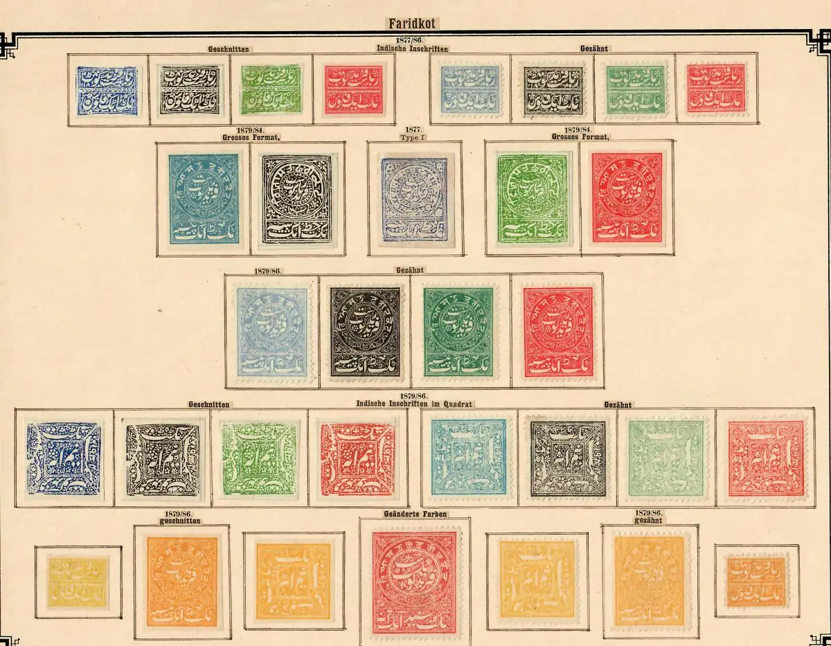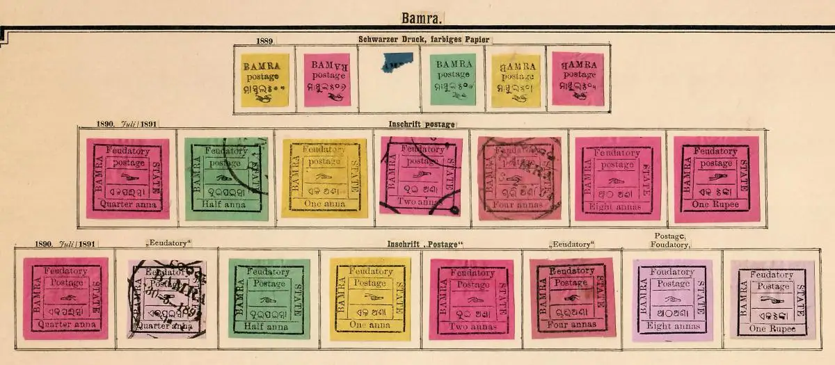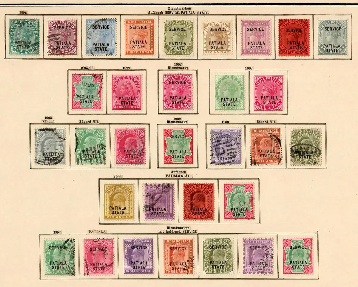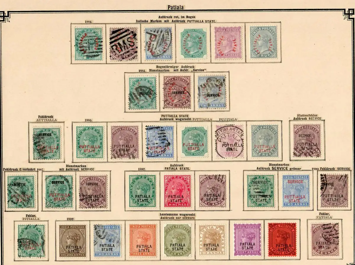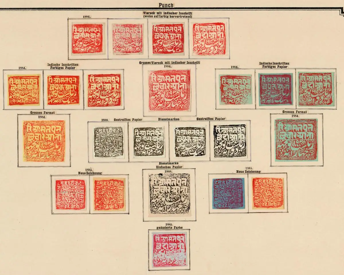 Alwar, Bamra, Bhopal, Bassaber, Bhor, Bundi, Chamba, Charkhari, Cochin, Datia, Dhar, Faridkot, Gwalior, Haidarabad, Indore, Jaipur, Jhalawar, Jind, Kaschmir, Las Bela, Kishengarh, Nabha, Nandgaon, Nawanagar, Orcha, Patiala, Punch, Rajpipla, Saurath, Sirmur, Travancore, Wadhwan,