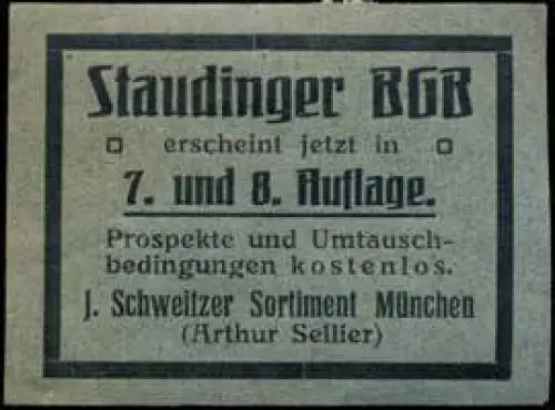 Bundesgesetzbuch erscheint jetzt in 7. und 8. Auflage, Antiquariat & Buchhandlung, Inhaber Arthur Sellier, Größe/Zustand: 3x5 , guter Zustand, Original alte Reklamemarke die seinerzeit für die Werbung benutzt wurde