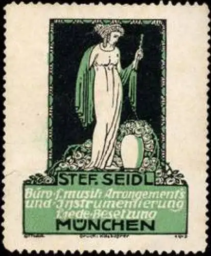 Büro für musikalische Arrangements und Instrumentierung für jede Besetzung, München, Musik , Größe/Zustand: 5x4 , beschädigt, Original alte Reklamemarke die seinerzeit für die Werbung benutzt wurde