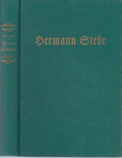 8°. 19 x 13 cm. Grünes Original-Leinen mit Einbandtiteln in Goldprägung. Das Leinen ist nur ganz geringfügig berieben. 333 Seiten mit gelbem Kopfschnitt, dieser hat eine sehr schmale Farbspur auf die obersten Seitenränder abgegeben. Vorsatzblatt mit Signatur des Autors in Bleistift. Insgesamt wirklich gut erhalten