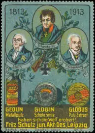 Geolin, Globus, Globin, Serie 1913, Nr. 3, Völkerschlacht, Befreiungskriege, Schuhputz, Reinigung., Größe/Zustand: 7x5 , guter Zustand, Original alte Reklamemarke die seinerzeit für die Werbung benutzt wurde