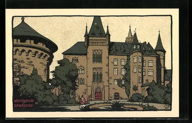 Steindruck-AK AK Wernigerode, Schlossportal mit Wachen