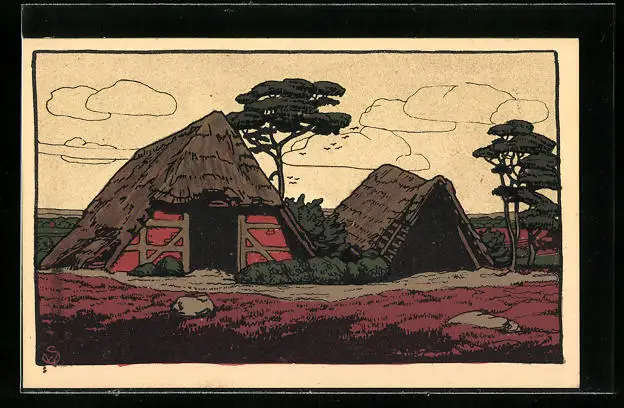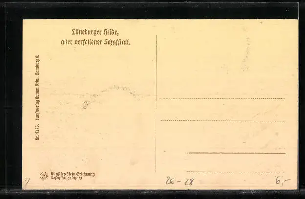 Steindruck-AK Alter verfallener Schafstall in der Lüneburger Heide