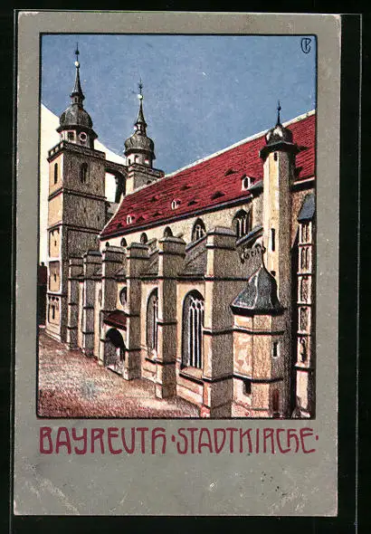 Steindruck-AK Bayreuth, Ansicht der Stadtkirche