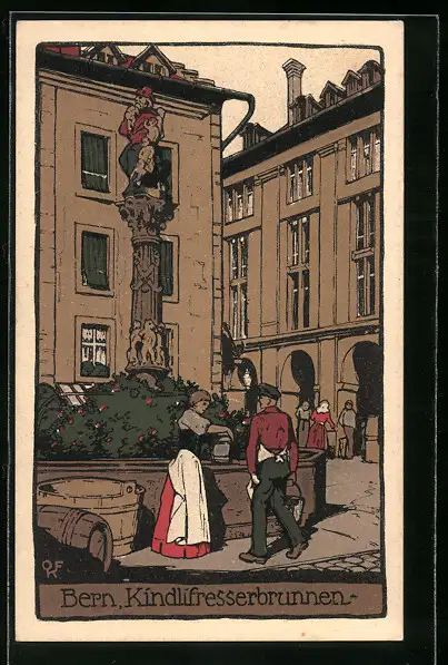 Steindruck-AK Bern, Partie am Kindlifresserbrunnen