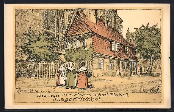 Steindruck-AK Bremen, Partie am Ansgarikirchhof