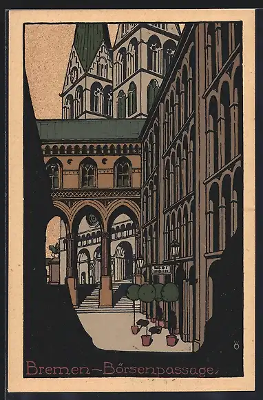 Steindruck-AK Bremen, Partie an der Börsenpassage