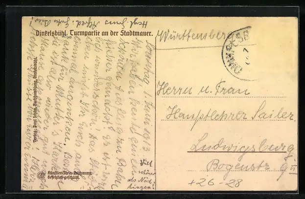 Steindruck-AK Dinkelsbühl, Turmpartie an der Stadtmauer