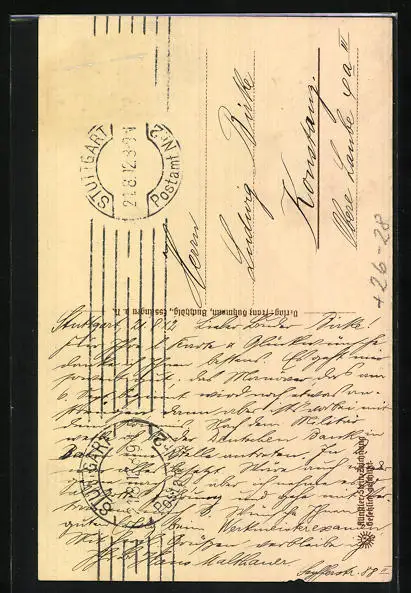 gelaufen 1912, Briefmarke entfernt, guter Zustand