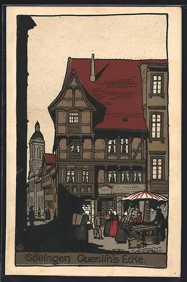 Steindruck-AK Göttingen, An Quentin`s Ecke