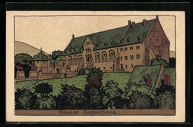 Steindruck-AK Goslar, Blick zum Kaiserhaus