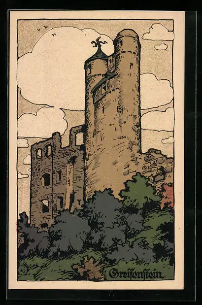 Steindruck-AK Greifenstein, Blick auf die Burg
