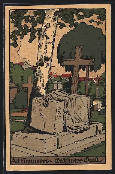 Steindruck-AK Hannover, Geöffnetes Grab in Alt-Hannover