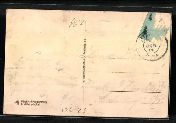 alte Ansichtskarte, gelaufen 1914, Briefmarke entfernt, guter Zustand