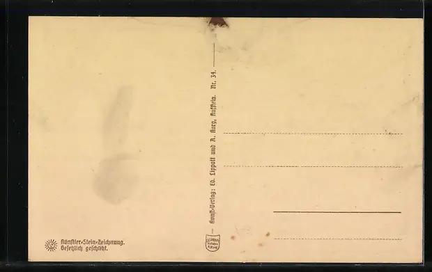 Personenbezogene Daten auf der Rückseite der Karte wurden durch blauen Textmarker unkenntlich gemacht. Die blauen Stellen sind auf die Vorderseite durchgeweicht und wirken sich negativ auf das Postkartenfoto aus