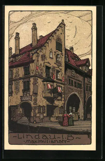 Steindruck-AK Lindau i. B., Maximilianstrasse