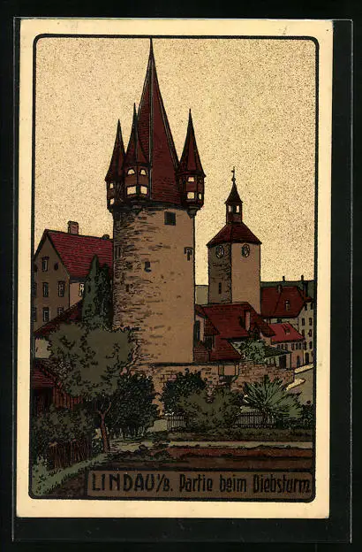 Steindruck-AK Lindau i. B., Partie beim Diebsturm