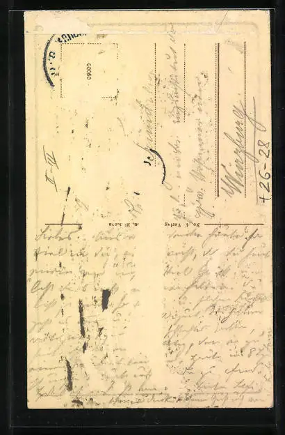 alte Ansichtskarte, gelaufen, Briefmarke entfernt, rückseitig Oberflächenschaden, guter Zustand