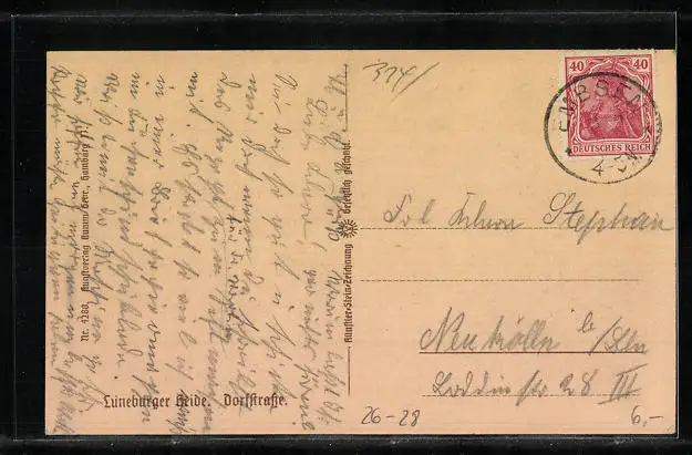 Steindruck-AK Lüneburger Heide, Dorfstrasse