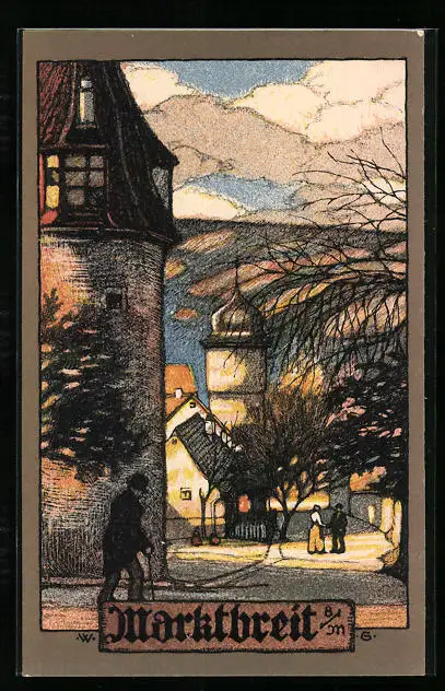 Steindruck-AK Marktbreit a. M., Strassenpartie mit Türmen