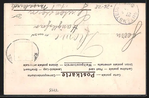 alte Ansichtskarte, gelaufen, Briefmarke entfernt, guter Zustand