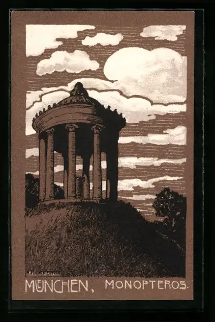 Steindruck-AK München-Schwabing, Monopteros im Englischen Garten