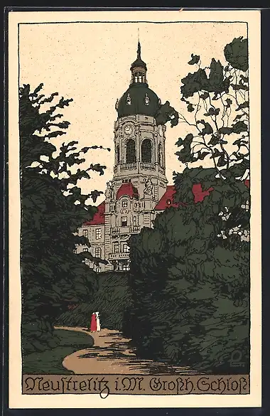 Steindruck-AK Neustrelitz i. M., Grossherzogliches Schloss
